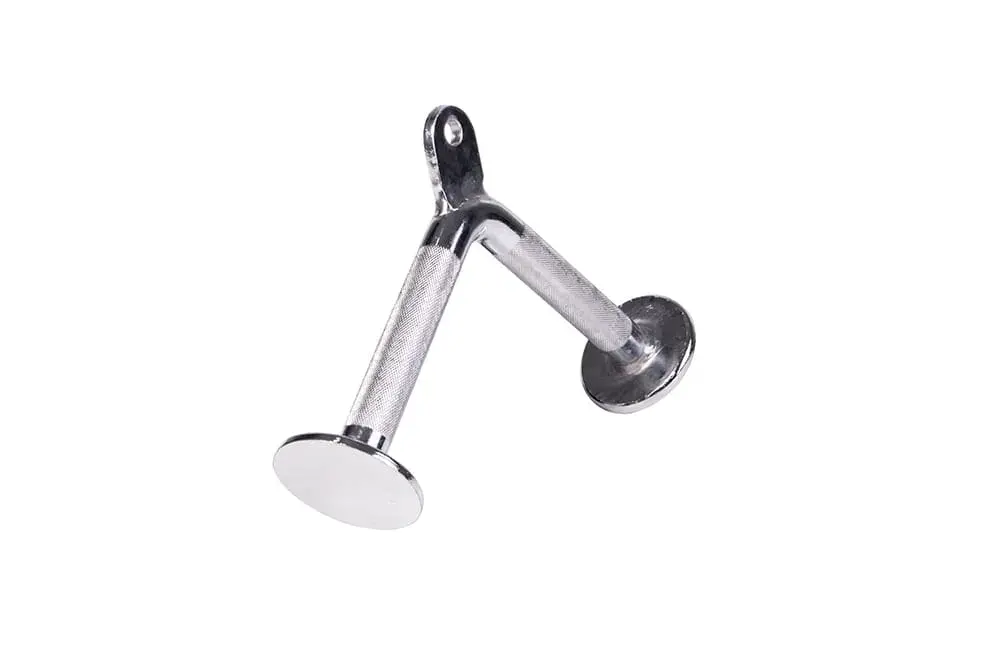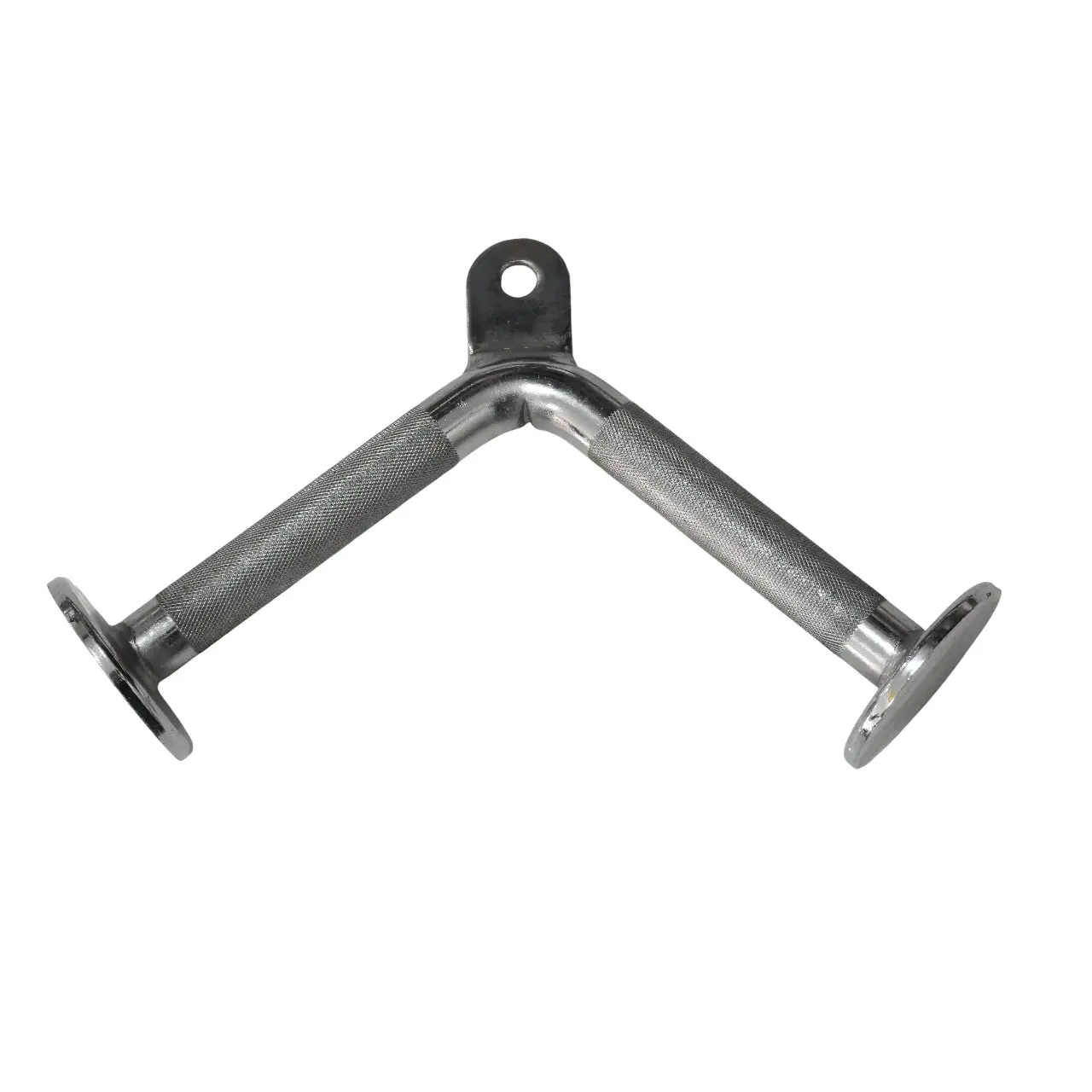 Este agarre en v para triceps principalmente extensiones de tríceps en polea alta, pero también es útil para jalones cerrados y remos, ofreciendo un trabajo versátil en brazos y espalda. Ideal para multigimnasios