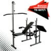 Podés trabajar el tren superior e inferior: pecho en plano/inclinado, espalda con dorsalera, bíceps en scott y piernas gracias al soporte frontal.