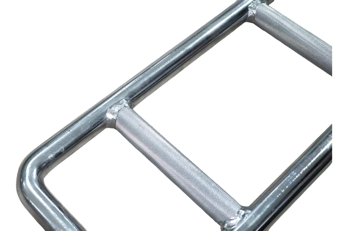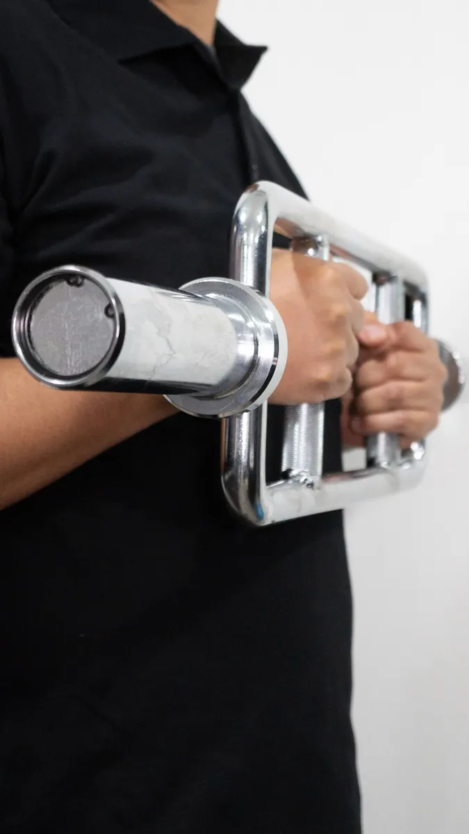 La barra romana olimpica permite un agarre neutro que reduce la tensión en muñecas y hombros, ideal para entrenamientos más seguros y enfocados. Esta se combina con discos olimpicos de 50mm.