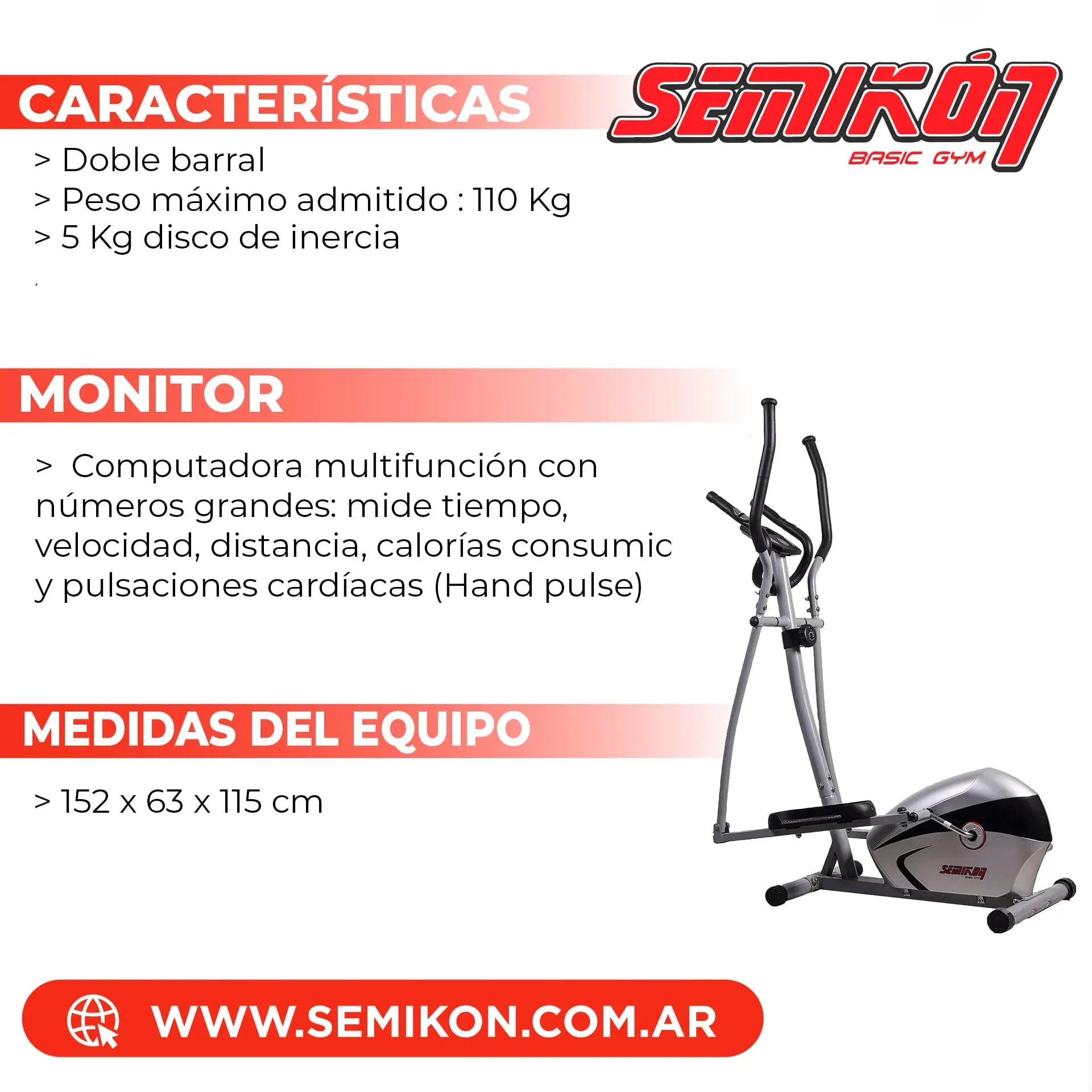 Porque combina ejercicio completo sin impacto, ocupa poco espacio, es silencioso y permite trabajar tanto tren superior como inferior en una sola máquina.