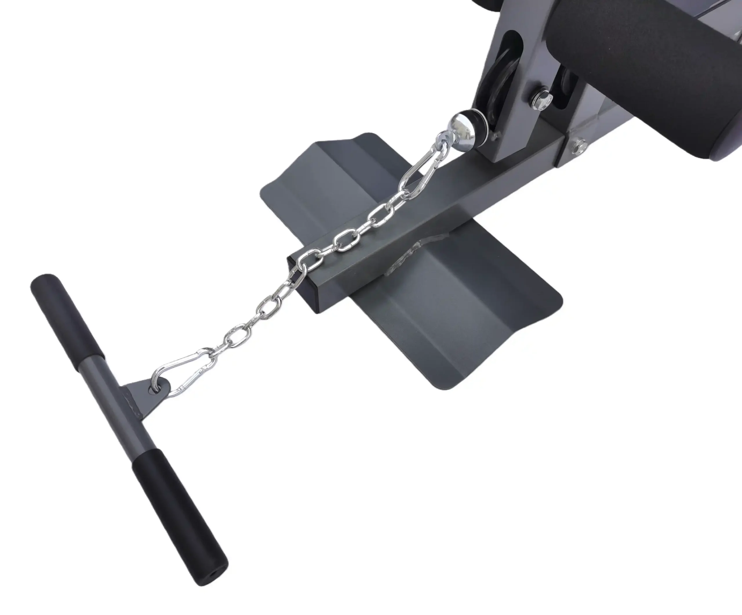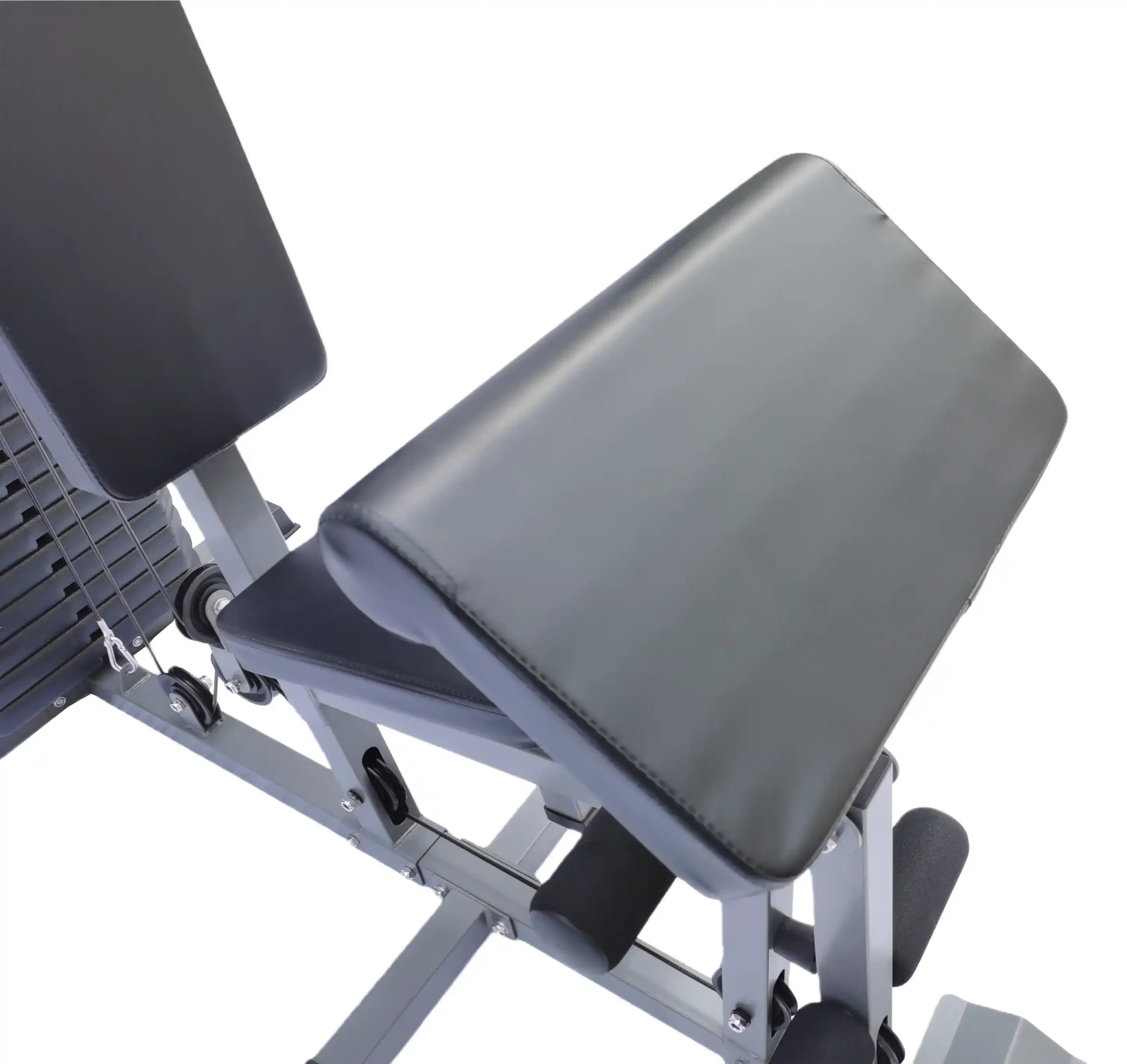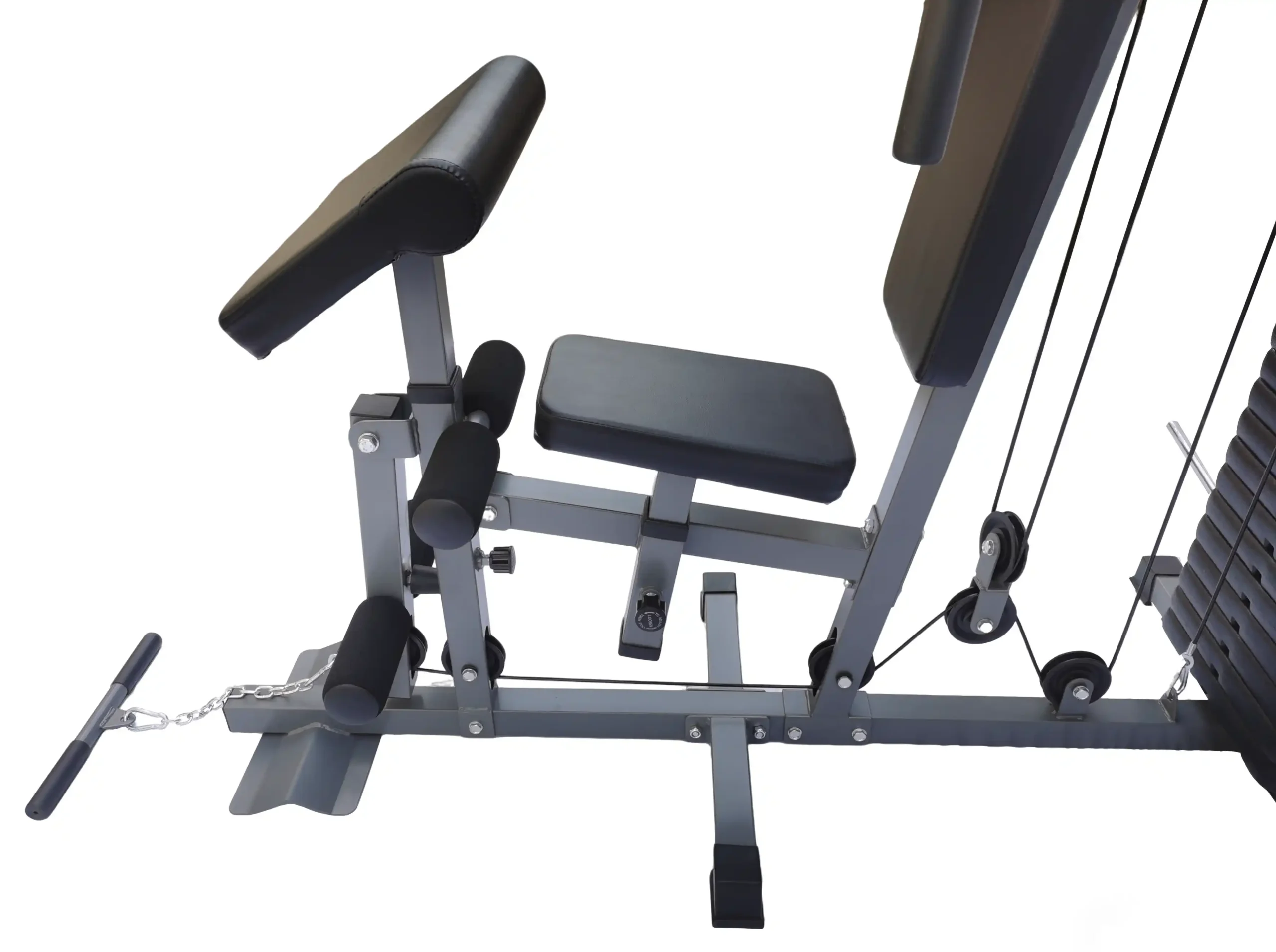 Con esta maquina multigym con banco Scott se pueden trabajar todos los grupos musculares: pecho, espalda, brazos, hombros y piernas. Es ideal para rutinas completas de fuerza y tonificación sin salir de casa. Se puede acoplar a nuestros distintos accesorios para multigyms